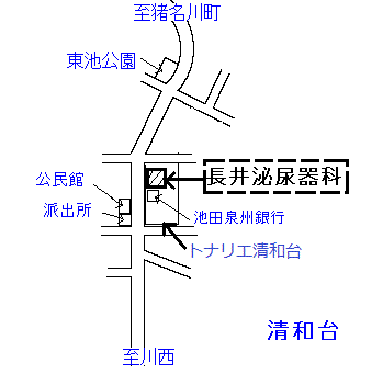 2020年7月20日 / 最終更新日時 : 2020年7月20日 kawamed 清和台・けやき坂地区 長井泌尿器科 医療機関情報 院長長井 潤電話番号799-8188標榜科目泌、緩和ケア 診療時間 診療時間午前 9:00-12:00 -午後 3:00-6:00月○●○火○●○水○●○木○××金○●○土○××●:月・火・水・金の午後1:00~3:00は予約診 住所・地図 所在地 清和台東3-1-8-2F